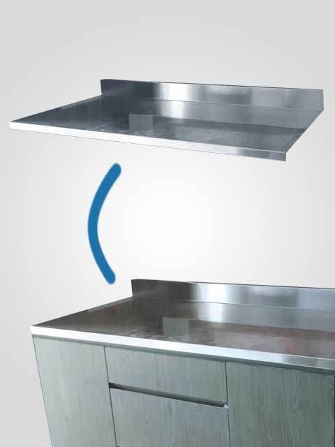 Lapisan penutup atau permukaan meja yang terbuat dari bahan stainless steel. Lapisan ini juga memberikan perlindungan dan tahan lama.