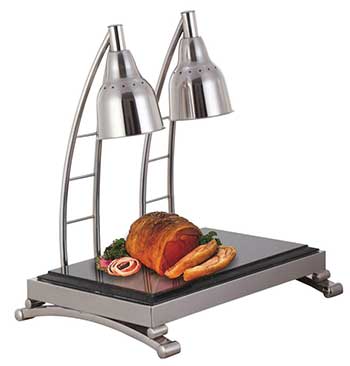 A carving station is the perfect addition to your catered event, buffet, or upscale restaurant. These stations allow servers to display, cut, and serve specialty meats, including prime rib, beef roasts, steak, turkey breast, chops, and ham. It has heat lamps mounted on its granite base.