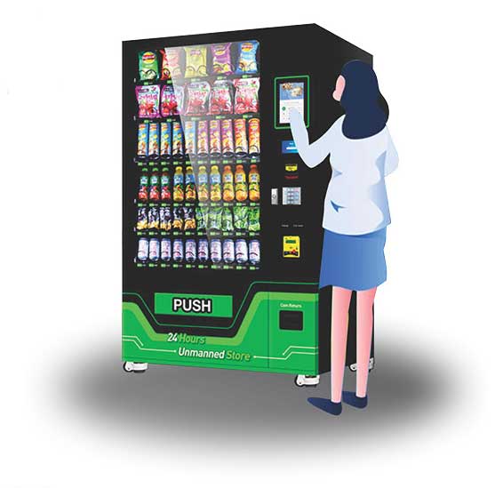 Mesin jual otomatis yang dapat mengeluarkan produk seperti makanan ringan, soft drink, air minum dalam kemasan, dll. mengeluarkan produk yang kita inginkan setelah kita membayarnya melalui kemudahan sistem pembayaran elektronik (e-payment). Terintegrasi dengan OS Android untuk daya dukung mobile phone. Dilengkapi tombol layar sentuh (touch screen) demi kenyamanan dalam bertransaksi Anda. Cocok untuk media promosi branding image di pusat keramaian, seperti: Stasiun Kereta, Airport, Terminal, Mall, Supermarket, Hotel, Apartemen, dll.