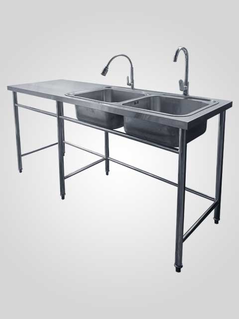 Bak cuci atau sink terdiri dari 2 lubang. Terbuat dari bahan stainless dan tahan lama serta mudah dibersihkan. Unit ini biasanya digunakan di area dishwashing dapur hotel, restoran, rumah makan, rumah sakit, dll.