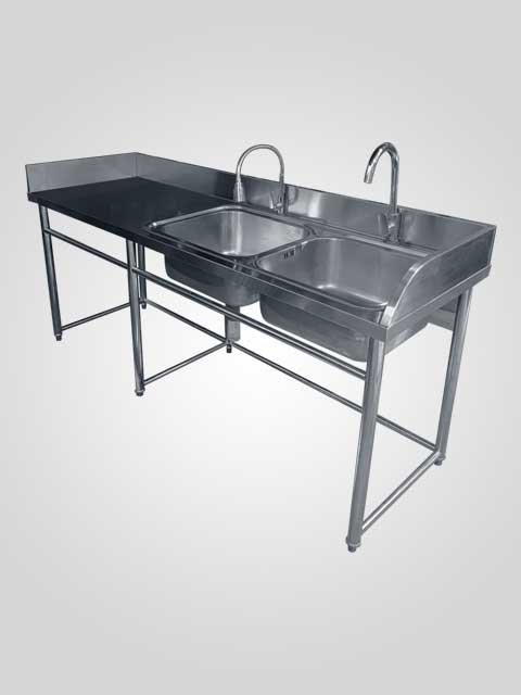 Bak cuci atau sink terdiri dari 2 lubang. Terbuat dari bahan stainless dan tahan lama serta mudah dibersihkan. Unit ini biasanya digunakan di area dishwashing dapur hotel, restoran, rumah makan, rumah sakit, dll.