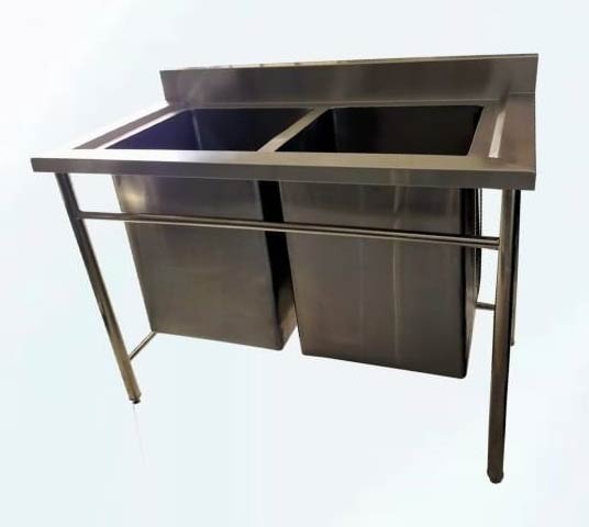 Bak Cuci atau sink terdiri dari 2 lubang dilengkapi dengan splash back dan cross bar serta bowl sink dibuat tinggi sesuai dengan kegunaannya. Terbuat dari bahan stainless anti karat dan tahan lama serta mudah dibersihkan. unit digunakan untuk mencuci peralatan dapur dan bisa juga digunakan untuk sortir baju kotor untuk laundry.