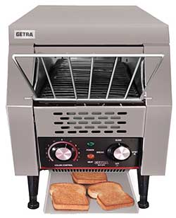 Alat untuk memanggang roti tawar dengan elemen pemanas dengan sistem mekanik konveyor. Dilengkapi dengan timer dan switch selector, alat ini memiliki kapasitas produksi 150 ~ 300 lembar roti/jam.