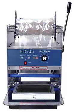 Mesin khusus untuk menyegel plastik tray untuk mengemas produk makanan buah-buahan dan sayuran segar, aneka daging, ikan yang praktis juga untuk menjaga higienitas produk. Cocok dipakai di Kedai makanan ringan, Stand Makanan Cepat Saji (food court), Supermarket, Minimarket, dll.