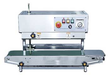 Mesin sealer yang berfungsi untuk menyegel produk secara terus menerus dengan bantuan ban berjalan (conveyor). Bisa dioperasikan secara horizontal untuk produk pada dan vertikal untuk produk cair