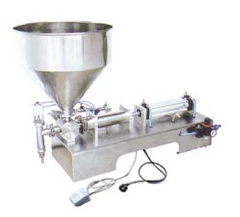 Mesin yang digunakan untuk mengisi produk cairan/pasta dengan takaran yang sama pada kemasan plastik, botol, dll. Mesin ini bekerja dengan bantuan kompresor angin (tidak termasuk)