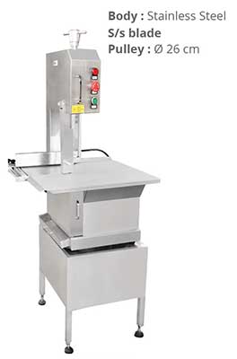 Seri Bone Saw didesain khusus untuk memotong daging beku, ikan beku dan tulang. Dengan feature design efisien, hemat energi, mudah pengoperasiannya. Body terbuat dari aluminium die cast / Stainless Steel untuk menjaga higienitas produk. Aplikasi untuk hotel, restoran, pabrik pengolah makanan dan tempat pemotongan hewan.