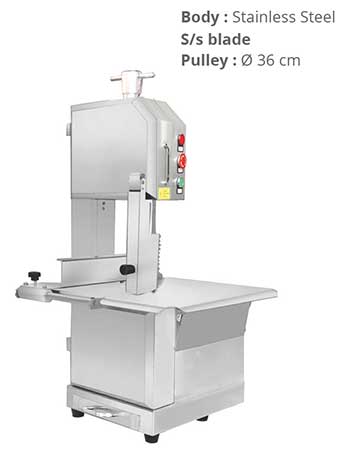 Seri Bone Saw didesain khusus untuk memotong daging beku, ikan beku dan tulang. Dengan feature design efisien, hemat energi, mudah pengoperasiannya. Body terbuat dari aluminium die cast / Stainless Steel untuk menjaga higienitas produk. Aplikasi untuk hotel, restoran, pabrik pengolah makanan dan tempat pemotongan hewan.