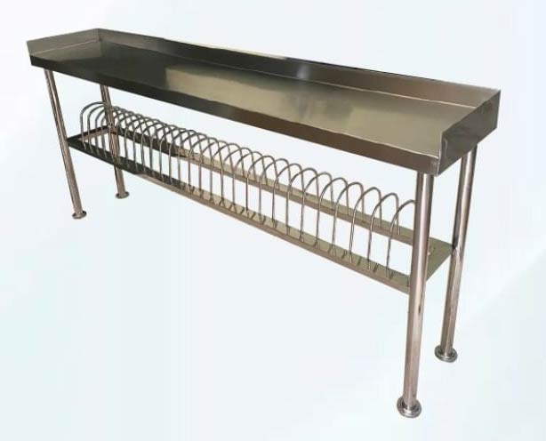 Over Dish Rack adalah rak yang dirancang menggunakan material full stainless steel berfungsi sebagai tempat penirisan piring, gelas, mangkok, dll. Lebih mudah dan praktis rak ini dipasang diatas bak cuci/sink agar air tetesan bisa langsung ke tempat cuci dan tidak membasahi lantai