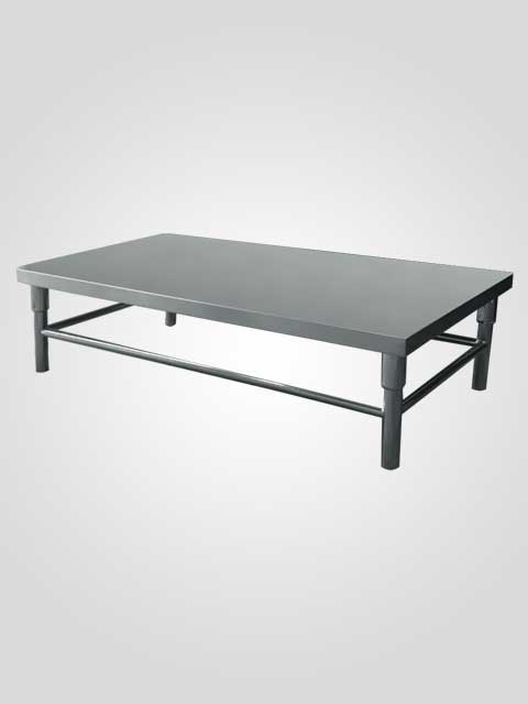 Meja kerja yang terbuat dari bahan stainless steel dengan ukuran yang lebih pendek atau kompak dibandingkan meja kerja standar. Meja ini biasanya digunakan di Dapur, Laboratorium, atau Area kerja lainnya