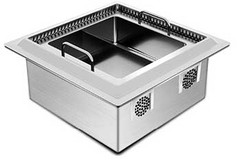 Stainless steel Pot dengan teknologi memasak tanpa asap, dengan 8 pipa hisap mampu menghisap uap proses memasak yang mengandung minyak sehingga pertikel asap disaring melalui box pemurnian actived filter (aluminium filter, actived charcoal filter, dan cotton filter) untuk penyerapan optimal, juga sinar UV mampu membunuh bakteri dan virus. Menjadikan kenyamanan saat menyantap hidangan yang sehat dan higienis di Restoran.