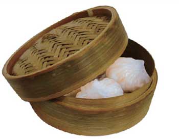 – Taruh produk makanan pada pengukus bagian atas. Bila ingin menaruh makanan di kedua kukusan bambu, taruh makanan yang lebih lama matang di bawah dan makanan lebih cepat matang di bagian atas