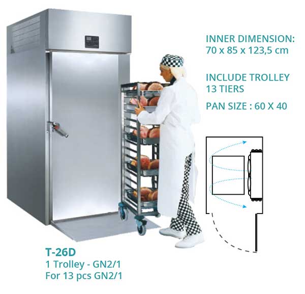 Aplikasi : Perusahaan pengolahan : Daging, Seafood, Catering dan Restoran, Hotel. Produk yang akan dibekukan dengan suhu awal 30°C, dapat dibekukan menjadi -20°C dalam waktu 6 sampai dengan 8 jam