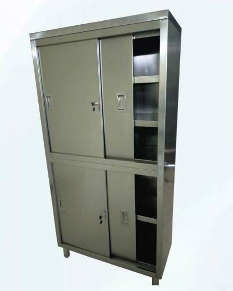 Upright Cabinet yaitu Lemari stainless yang dilengkapi dengan pintu geser, hambalan tengah dan kunci. Digunakan untuk storage/penyimpanan bahan baku makanan dan lainnya.