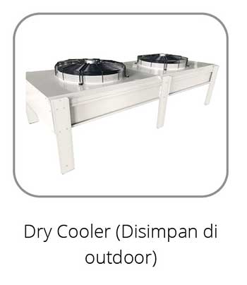 Sistem pendingin menggunakan media sirkulasi air untuk penyerapan panas mesin yang tadinya dengan kondensor diganti dengan PHE, air yang telah menyerap panas tersebut didinginkan kembali di dry cooler yang disimpan di area outdoor.