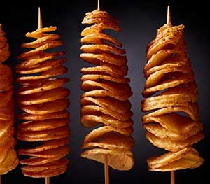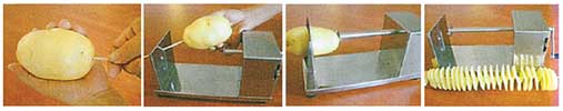 Alat untuk mengiris produk sayuran seperti kentang, wortel, talas, ubi, dll menjadi bentuk tornado yang menarik. Cocok untuk penggunaan di cafe, pusat rekreasi, food court, kantin sekolah, dll